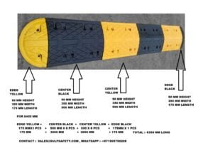 ROAD HUMP 50 MM HEIGHT X 350 MM WIDTH X 1350 MM LONG SET 2 EDGE YELLOW AND BLACK ( DHS. 40 DHS FOR 2 ) + 2 CENTER YELLOW AND BLACK EACH ( DHS 85 FOR 2 ) FIXING BOLT ADDITIONAL